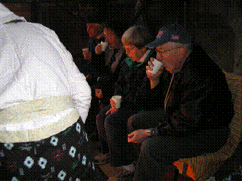 Tasting the afternoon tea of the ama. Good job interpretation. Bursting into laughter at the