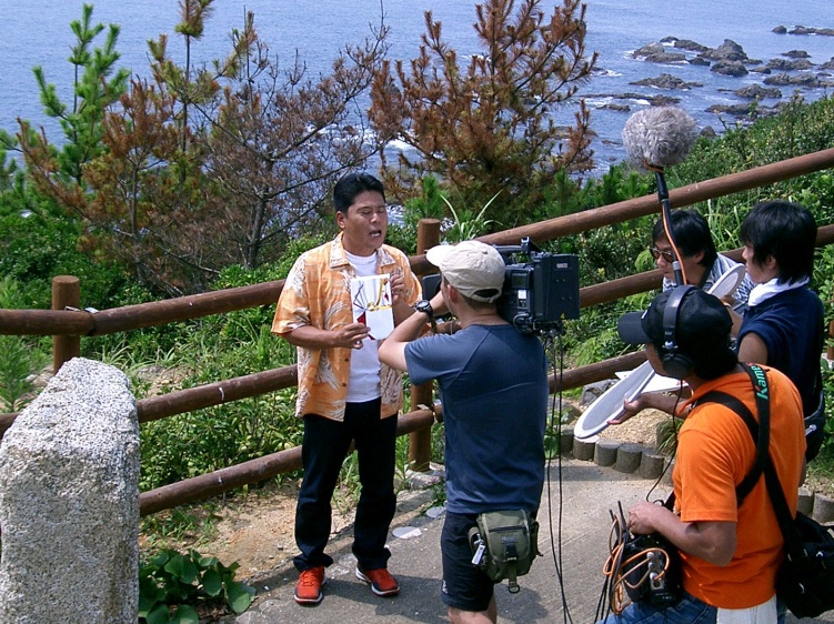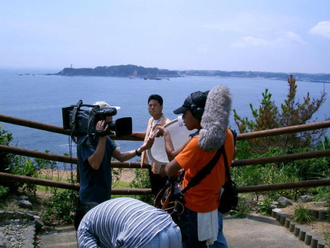 TV愛知 虹スタのロケがやってきました。 菅崎の公園 対岸に安乗埼灯台がみえています。 |