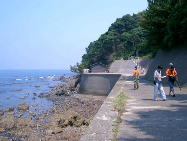 やってきたのは鯨崎、汐も引いてて いかにも魚介に恵まれていそうです。 |
