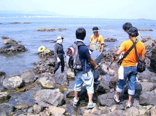 宮本アナが海女に話を聞いてるうちに、いっしょにもぐらぁみゃあ〜! |