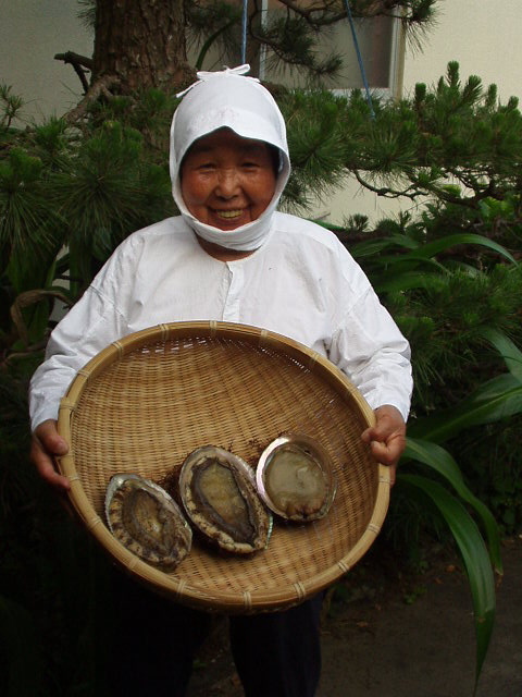 今日は大漁です。 エッ?3こで?と思うでしょう 600g、900g、500gの3つで2kgの大物なんです。 60年近く潜る私も、最近では滅多にない大物揃いぶみです。 国崎の熨斗あわびもこんな大きな鮑を使います。 天照大神が1年間に食べる量はナマの鮑で700s だから大きな鮑が約1000杯!!(鮑の数え方) なんてグルメで食いしん坊なんでしょう 打ち鮑にもこんな大物のアワビを使います。 あわびは薄くむいて乾くと小さくなるからです。 900gのなまアワビからできる打ち鮑はわずか50g 神様の食べる分が9割5分、まったく食いしん坊ですね・・・・ 海女 禮子(れいこ) |