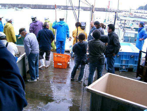 ロケ一行が港へ着くと、何やら騒がしい![]() |