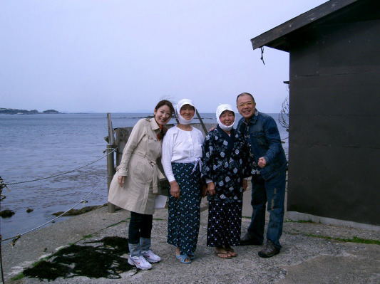 タージンさんのおねだり勝ちで、ブリ1本ゲット〜〜!![]() その場で刺身にしてもらいほおばる二人 ![]() 港を離れ岬を散歩していると海女に遭遇!! ![]() |